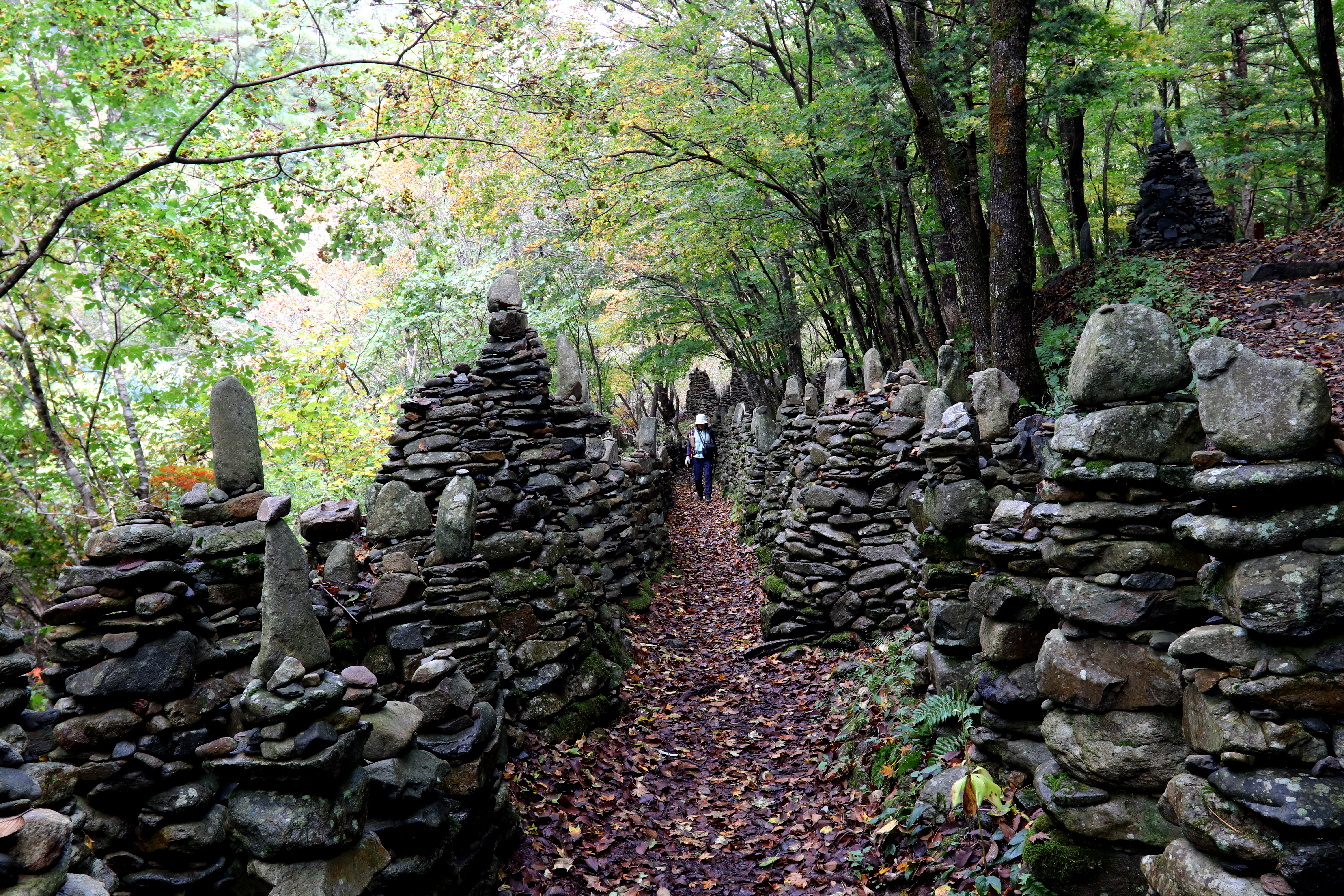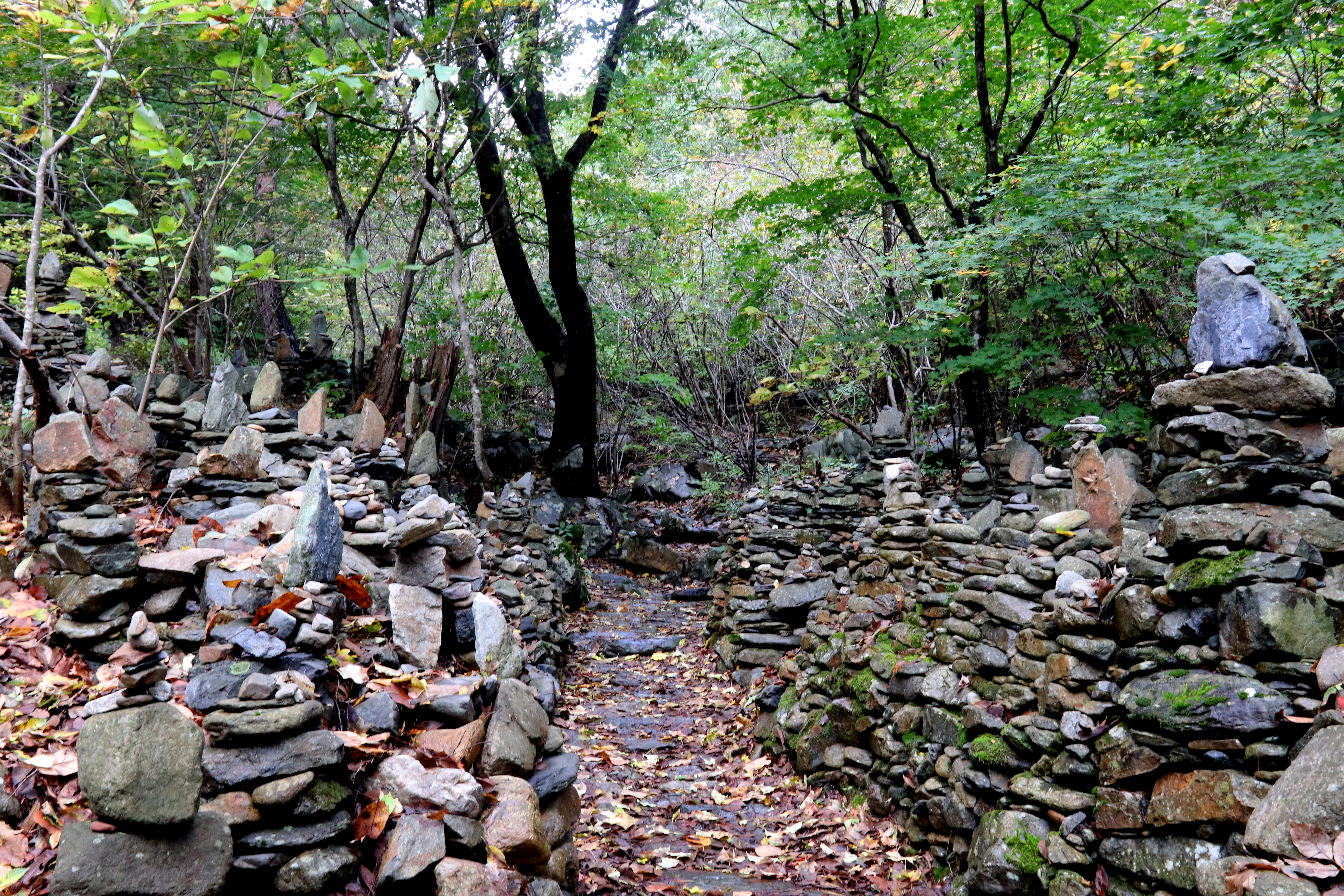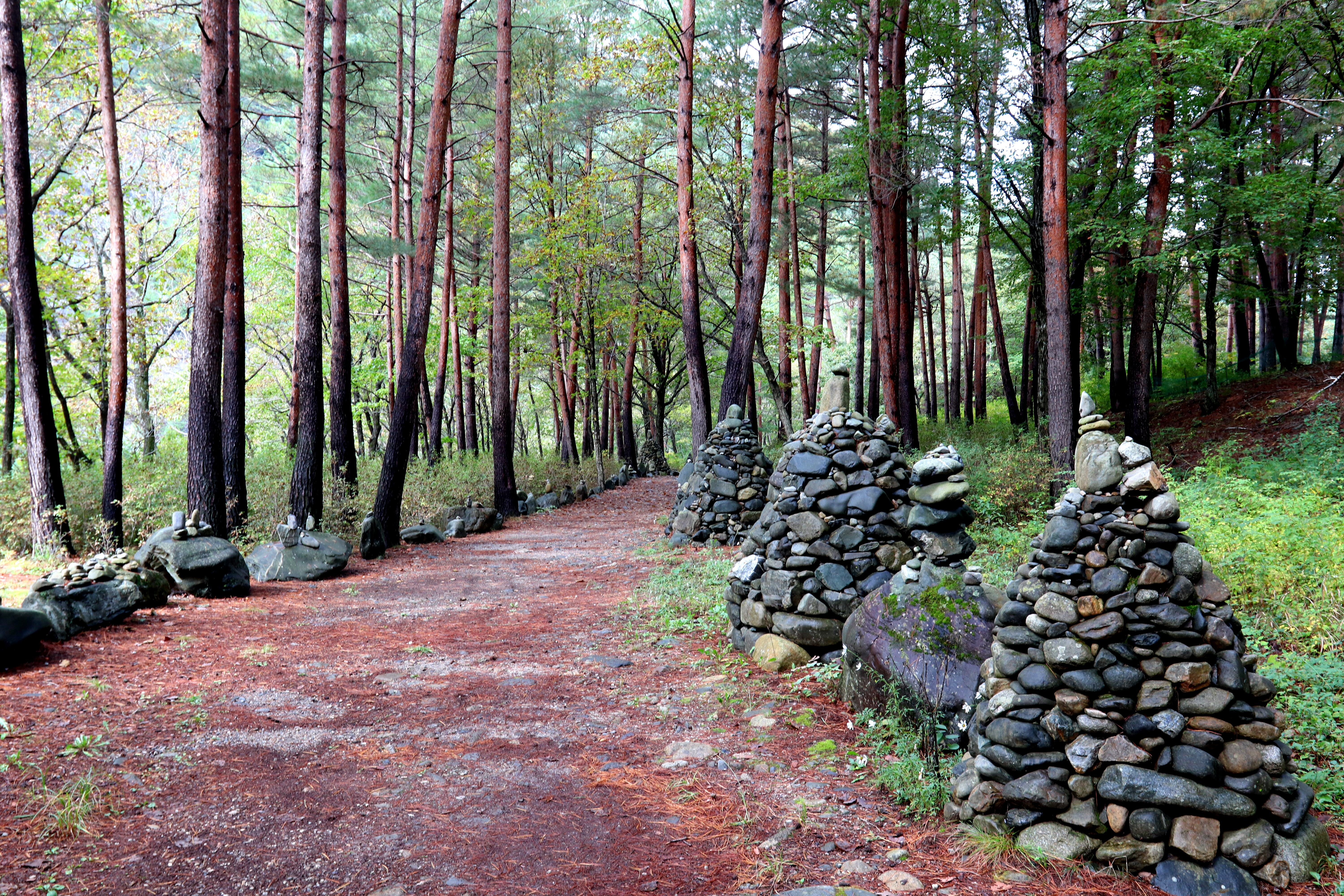 *松林길에 세워진 돌탑*