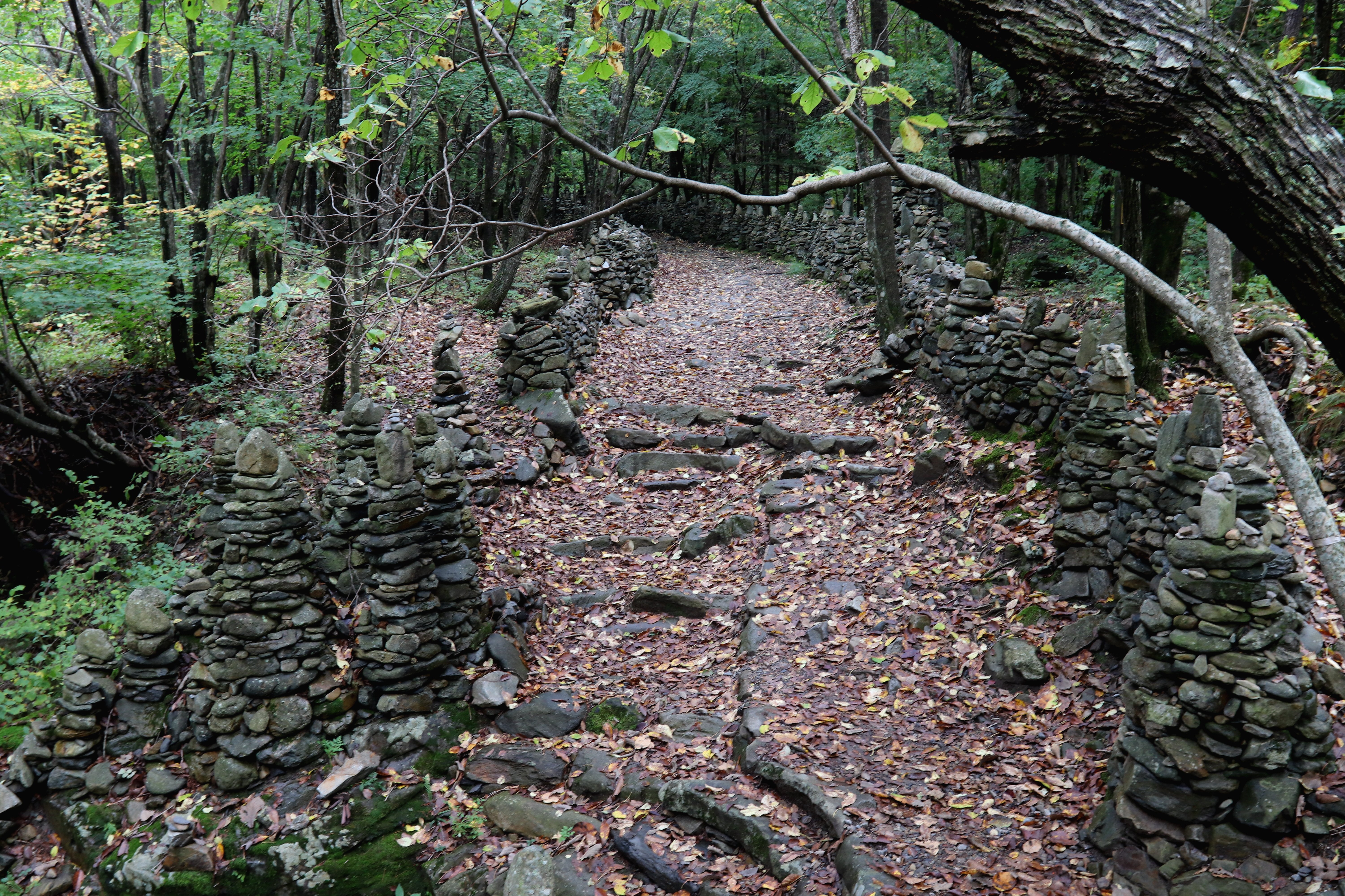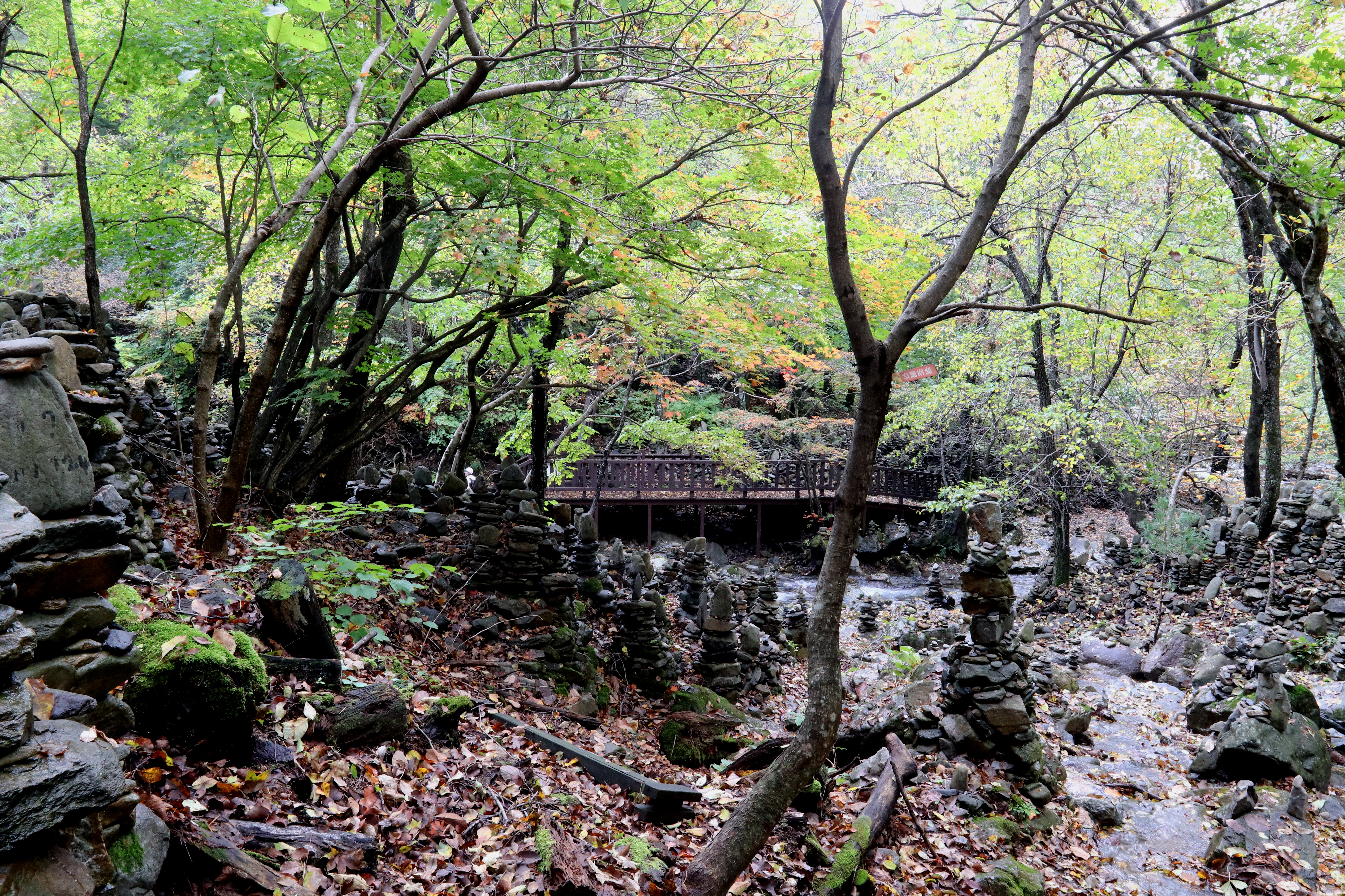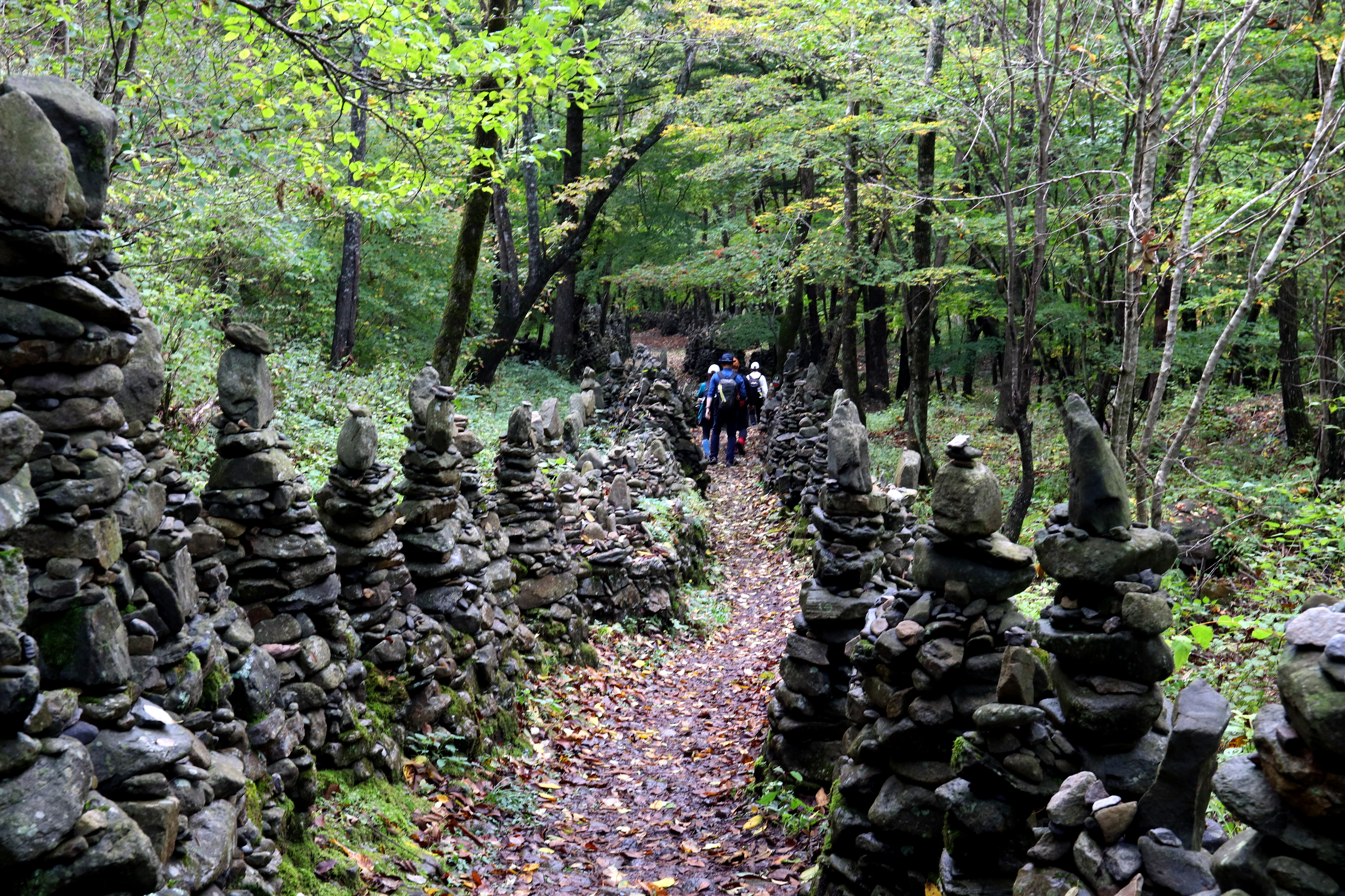 *松林길에 세워진 돌탑*
