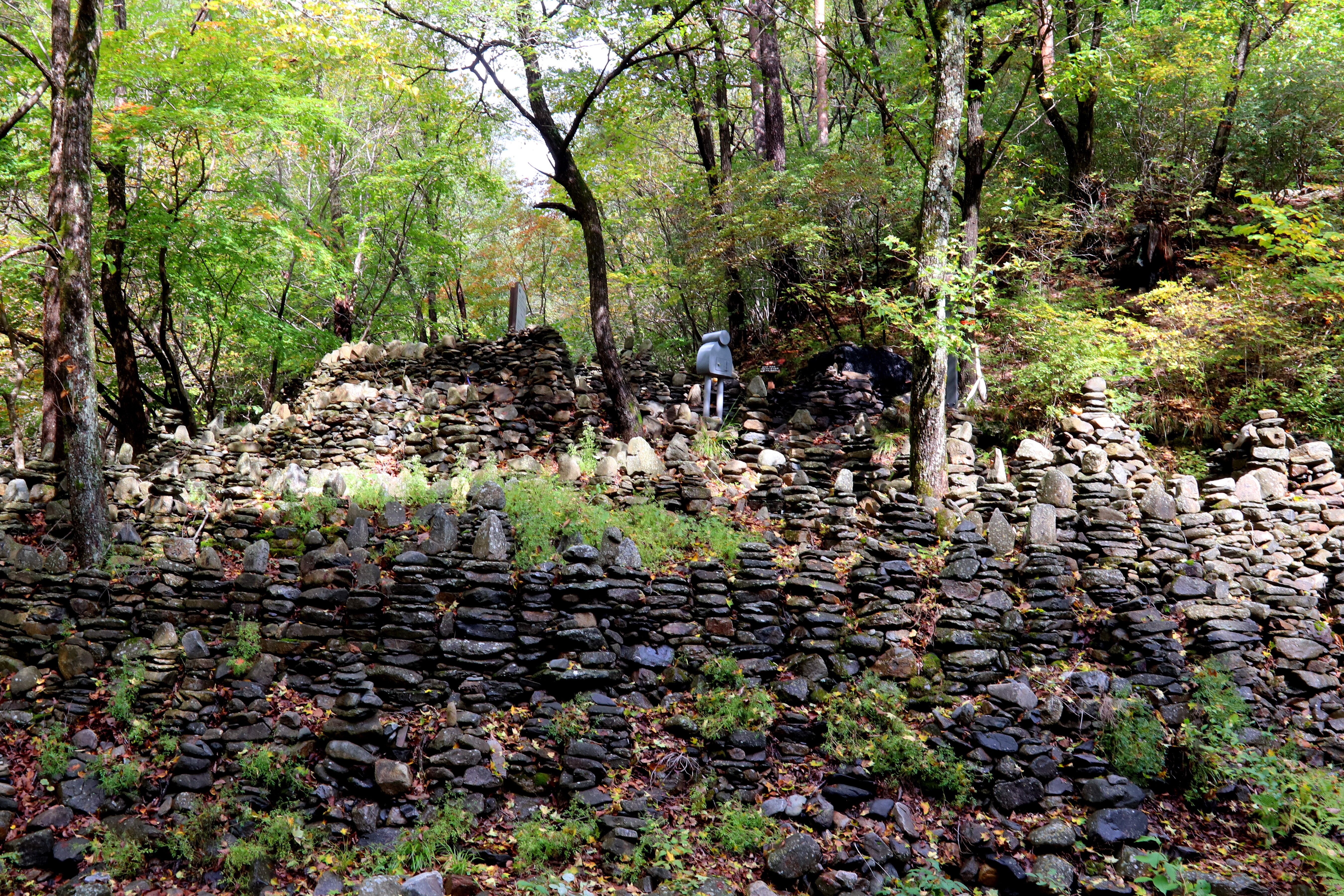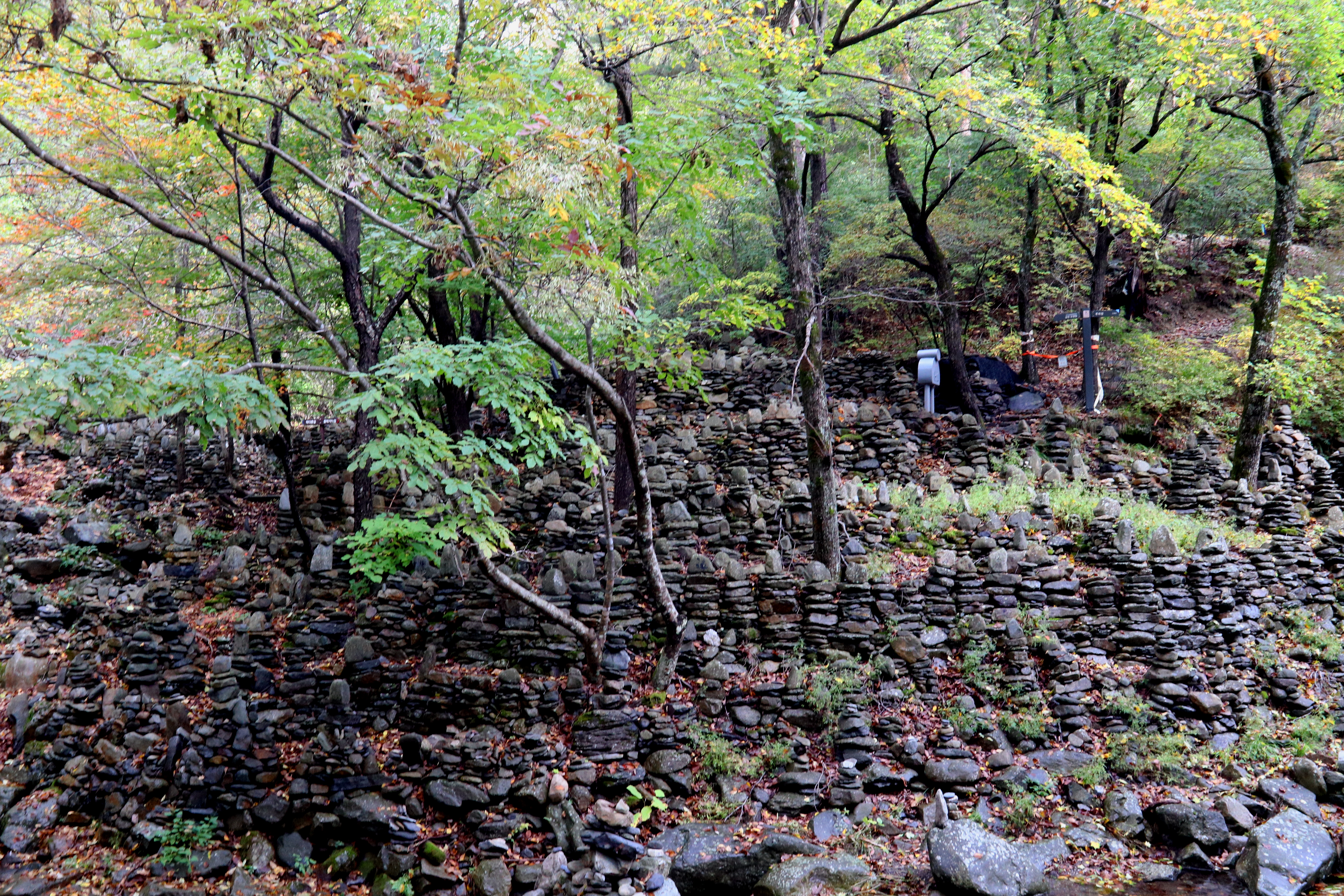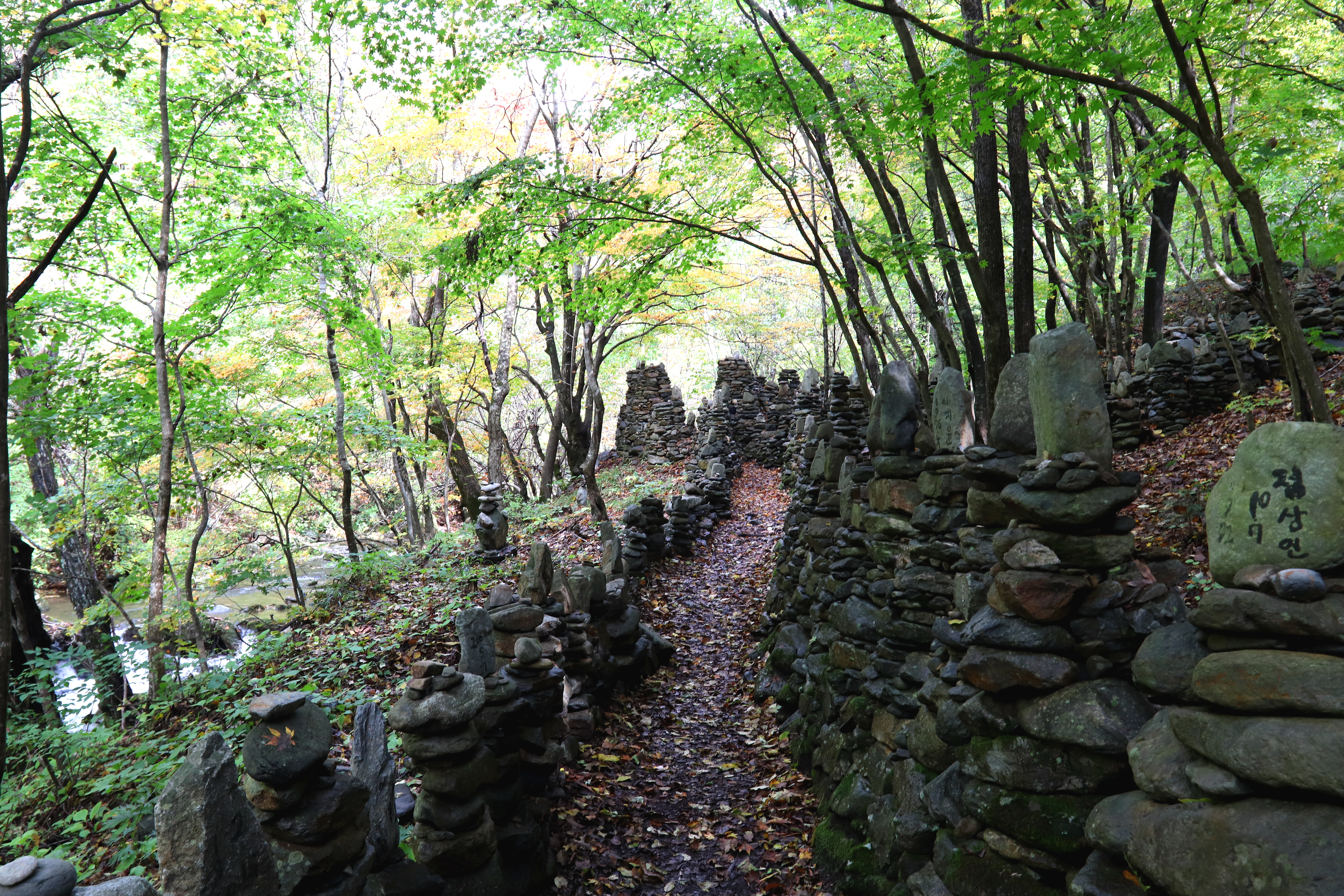 *돌탑마다 이름과 숫자가 쓰여 있는데. 탑을 완성하고 기도를 한 날짜를 기록한 것이라고 한다*