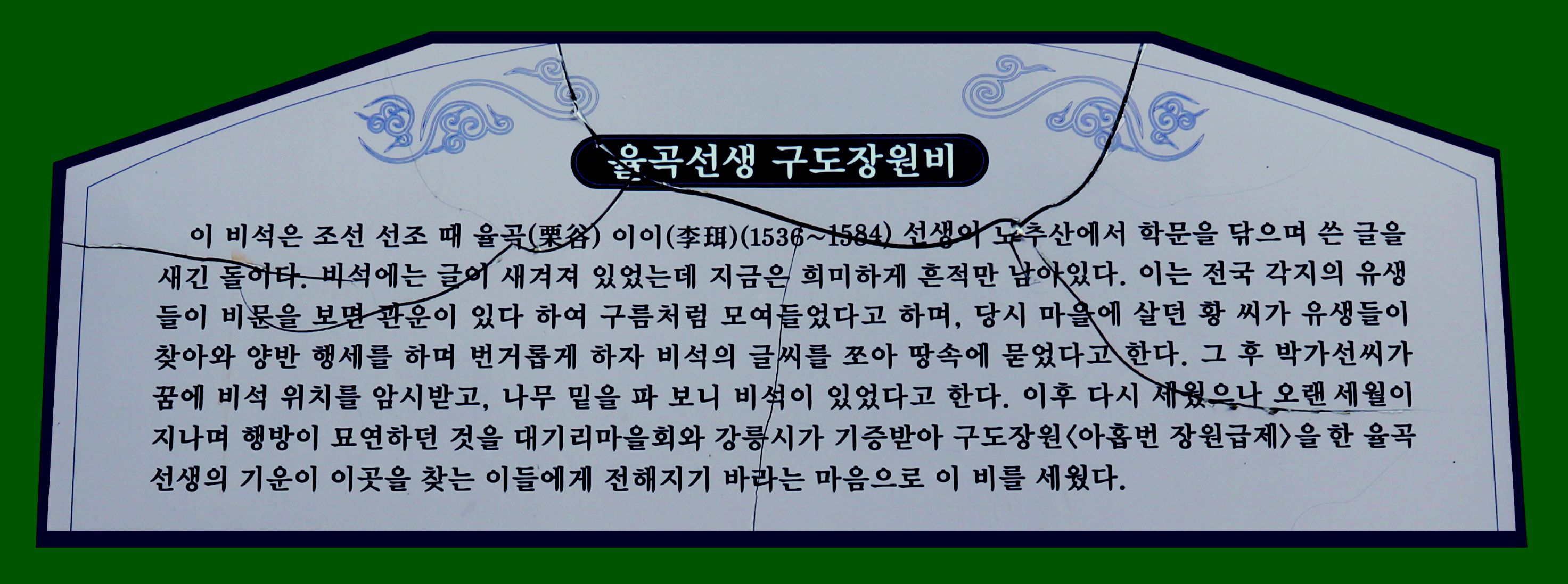 *율곡선생 九度壯元 碑에 관한 설명글*