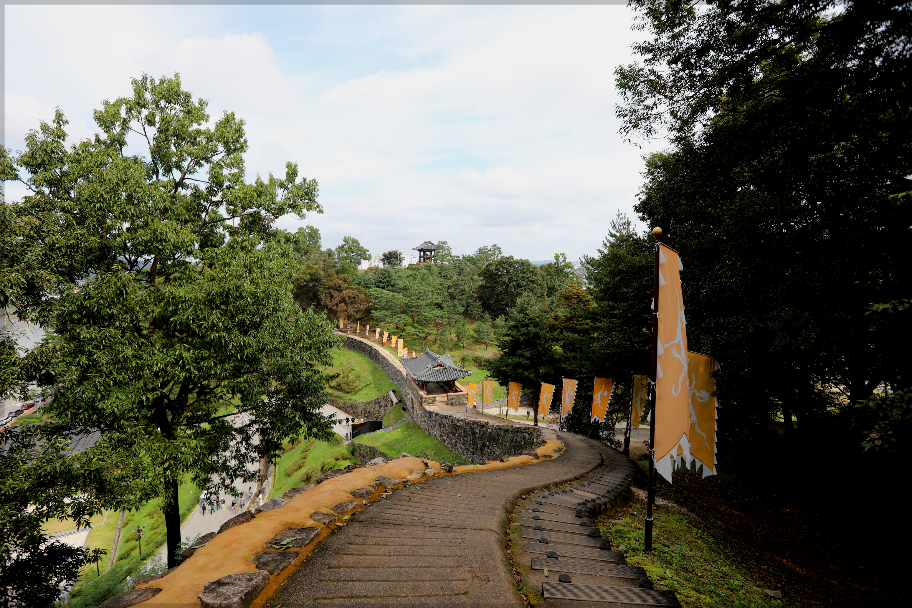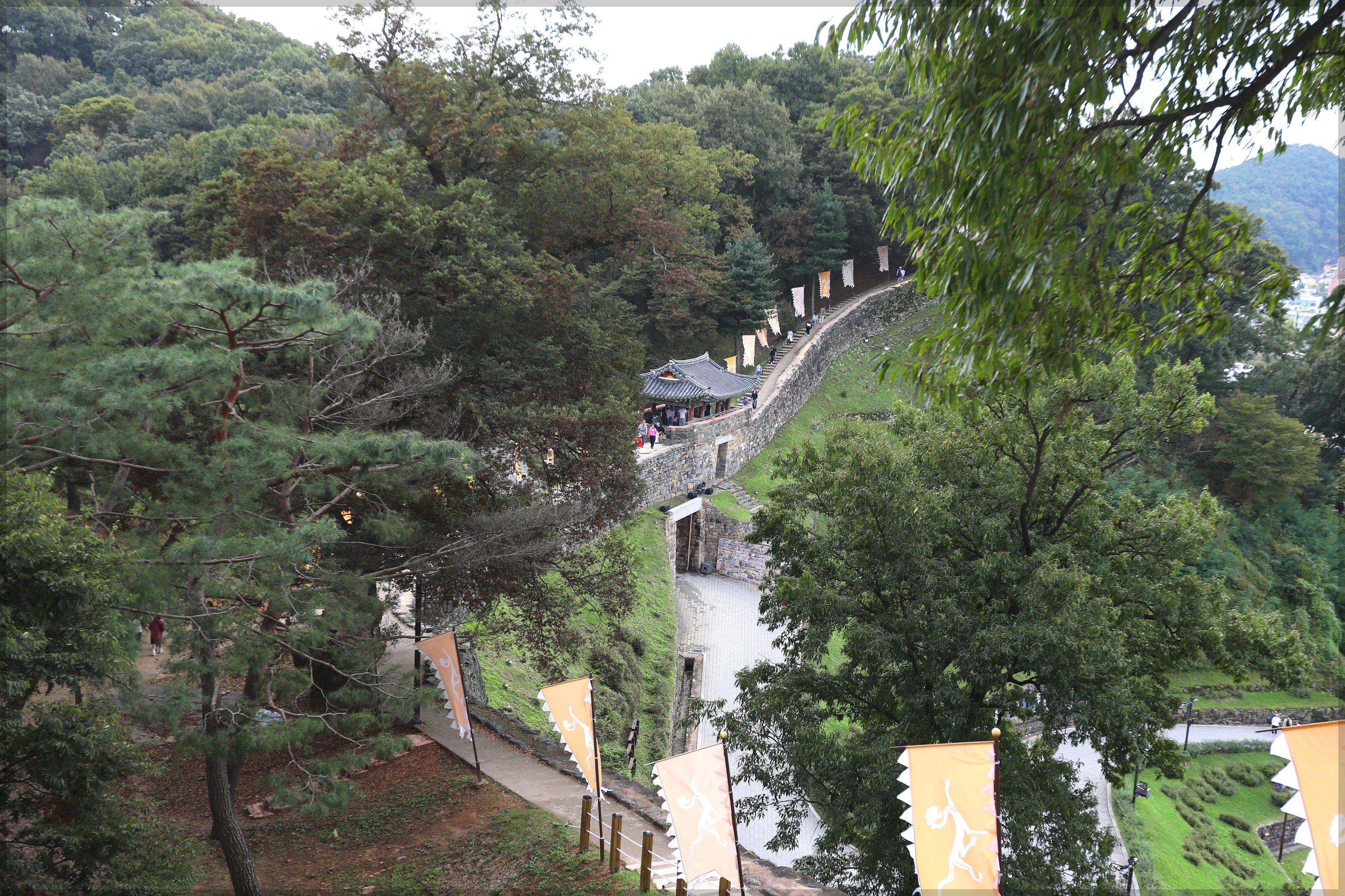 *성곽에서 보는 白虎 깃발과 금서루*
