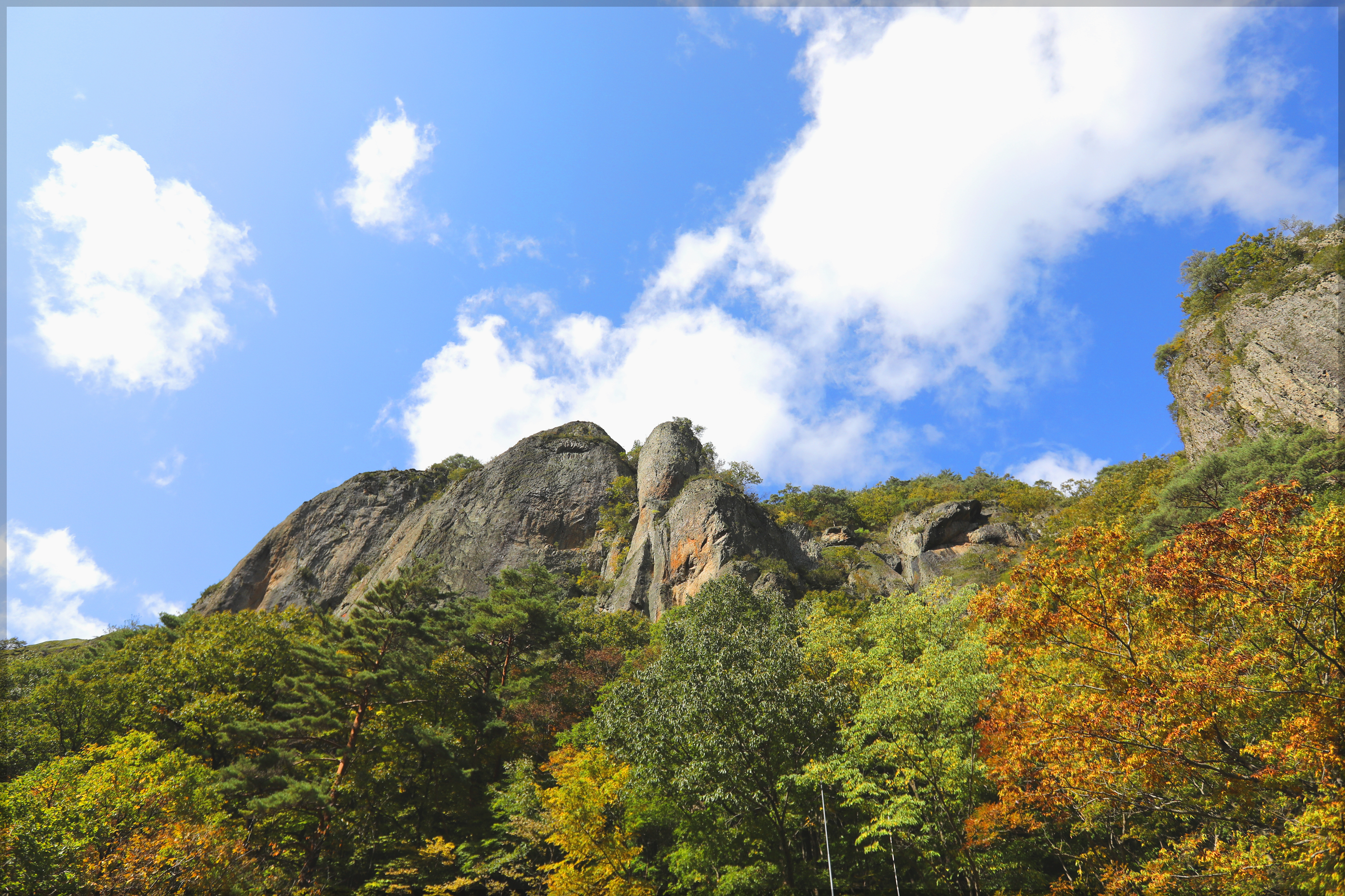 굳은 용결 응회암으로 이루어져 特色있는 景觀을 이루고 있어 우리나라 3대 岩山 중 하나로 손꼽힌다*