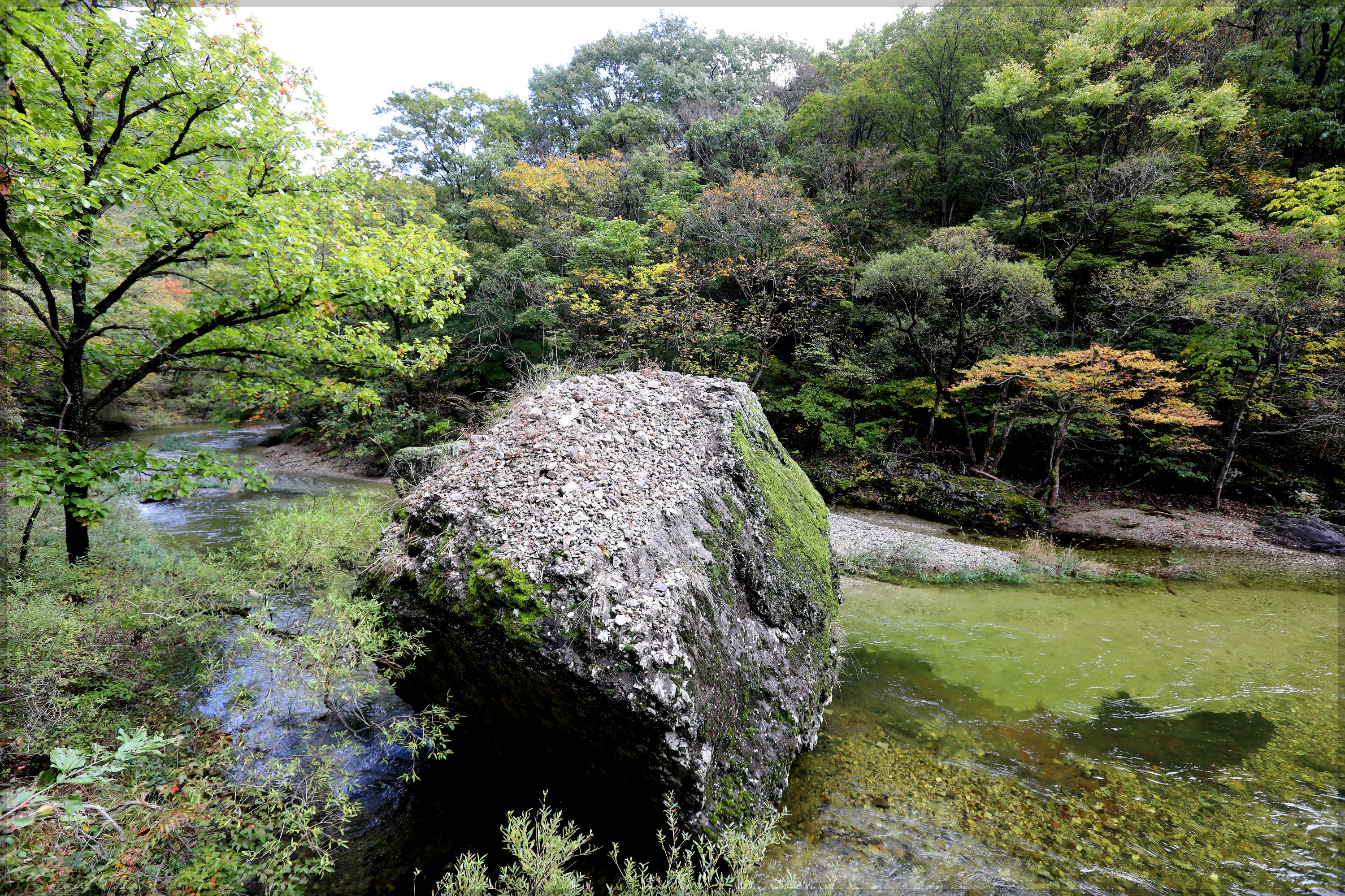 왕거암. 등의 산들이 말발굽형으로 자연성곽 같은 멋진 산세를 이루고 있으며. 7천만 년 前 용암이 흘려내려면서