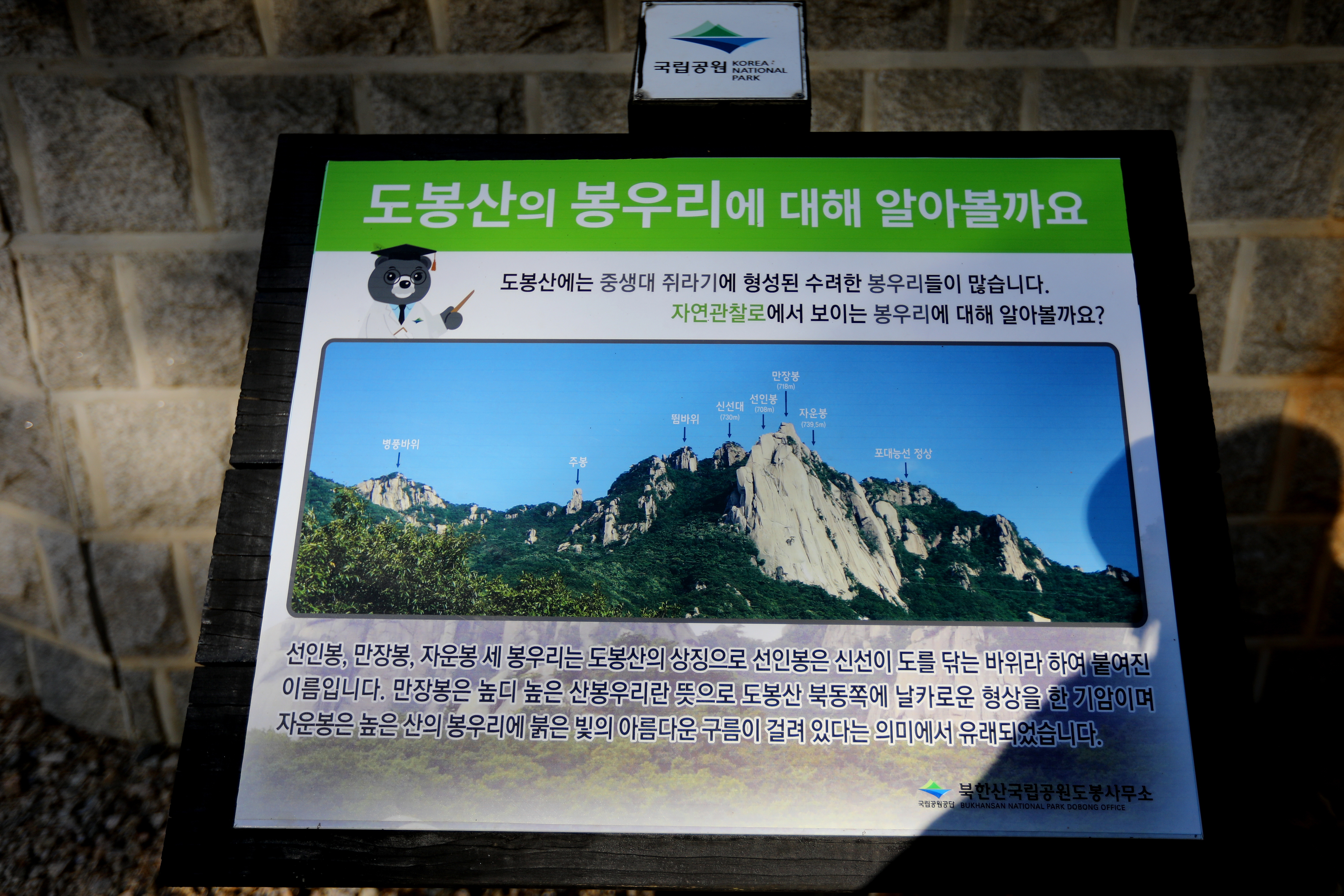 *도봉산은 세계적으로 보기 드물게 都心 속에서 쉽게 찾아볼 수 있는 山으로. 景觀이 수려하여 연간 천만명이 찾는