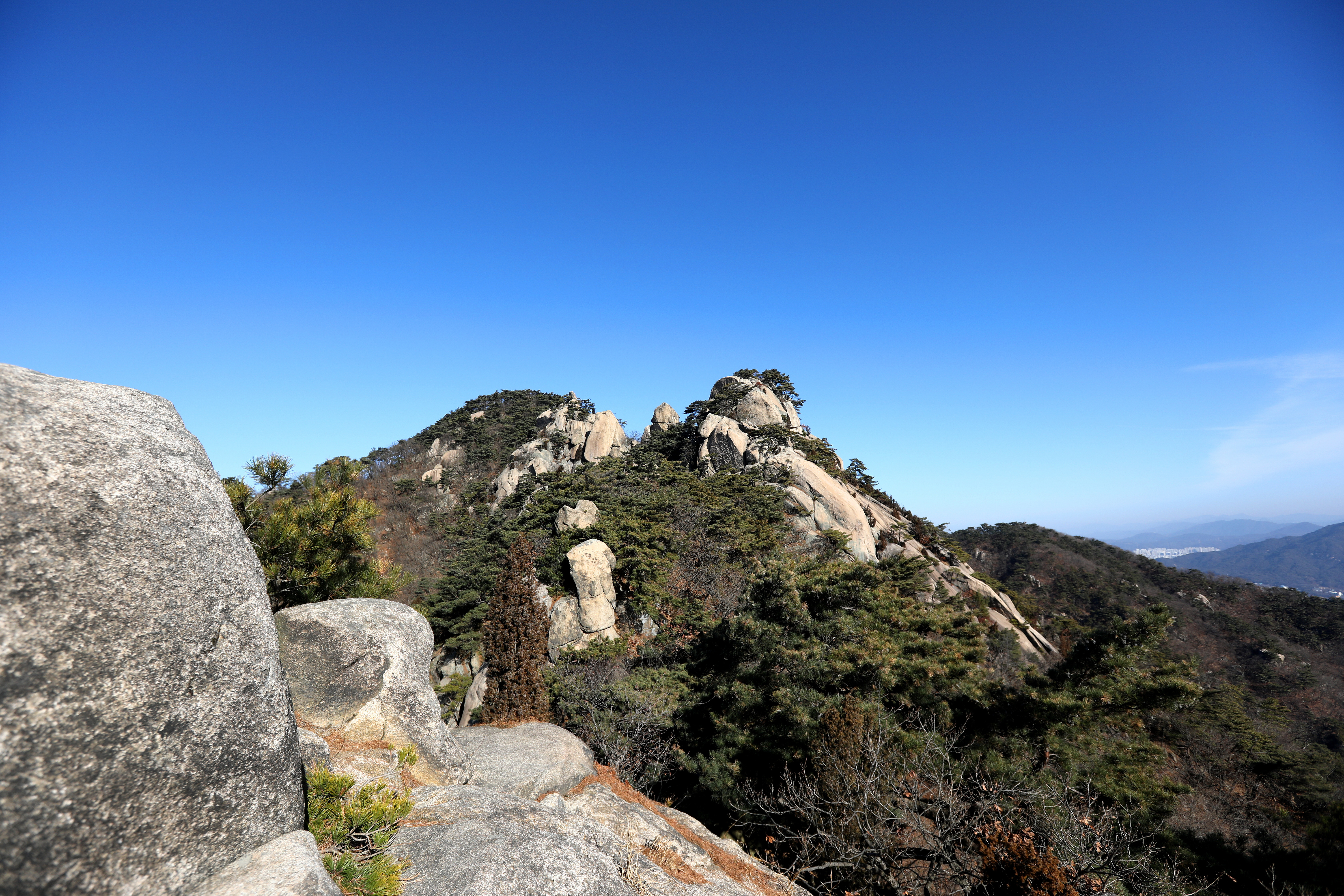 *보문능선 전망바위에서 보는 내려온 봉우리*