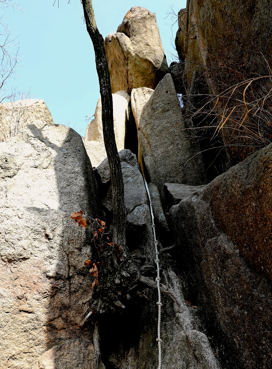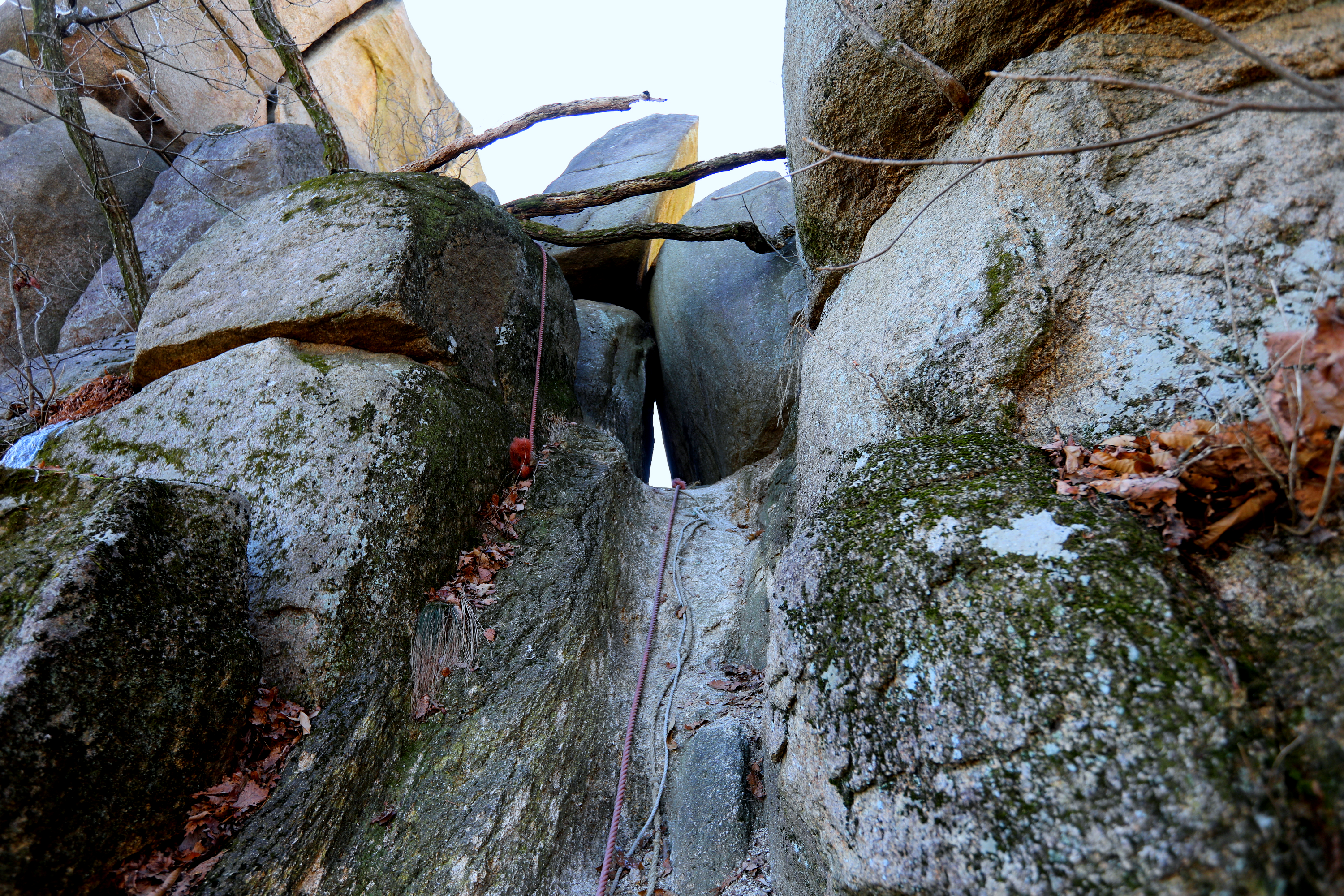 *석문으로 올라가는 로프 구간*