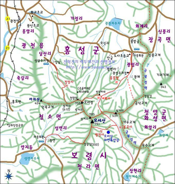 *烏棲山(오서산)은 충남 보령시 청소면과 홍성군 광천읍. 청양군 화성면 경계에 잇는 높이 790.7m의 산으로 금북정맥의
