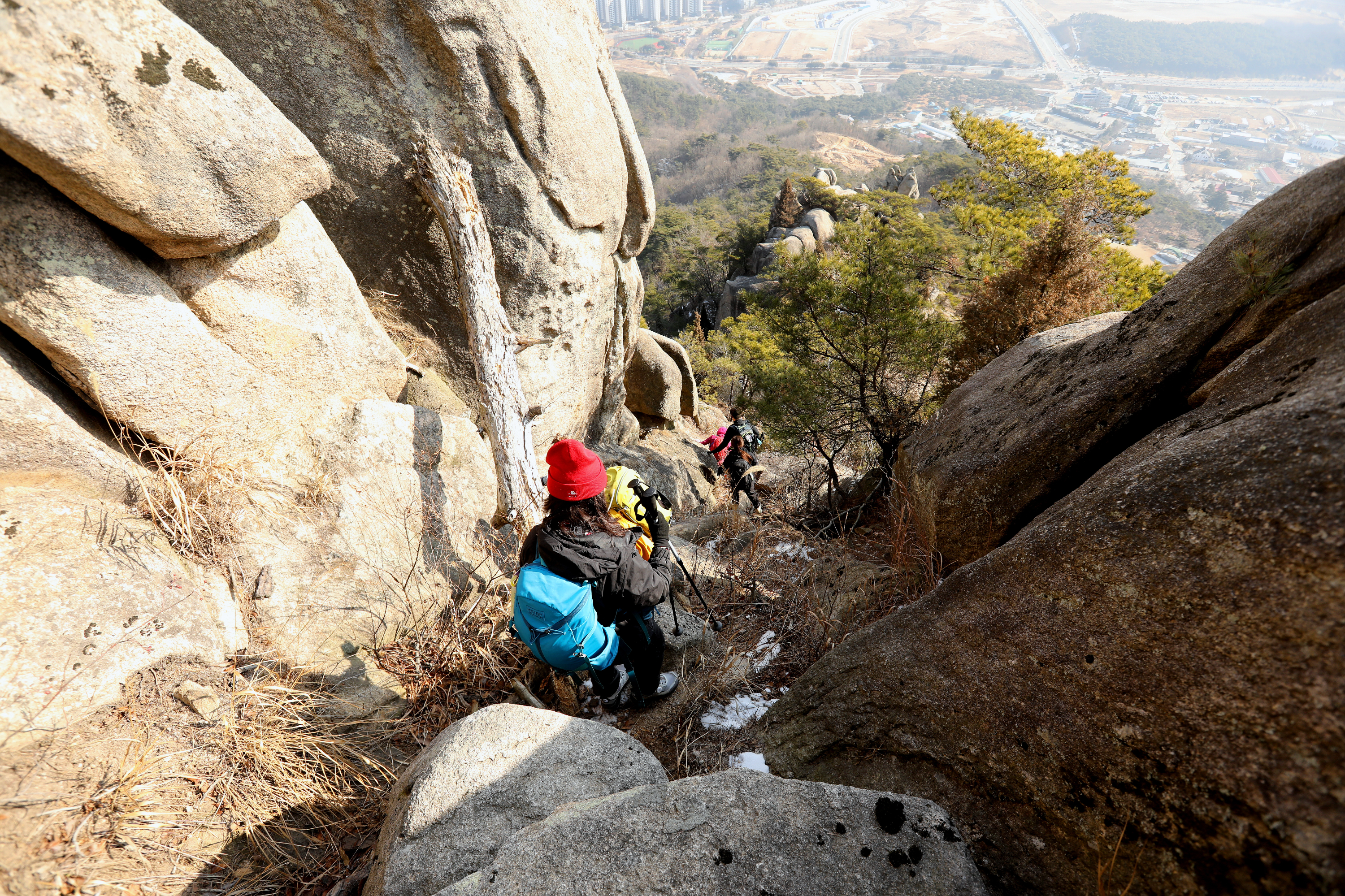 *암봉 사이를 내려오는 거칠른 바위길*