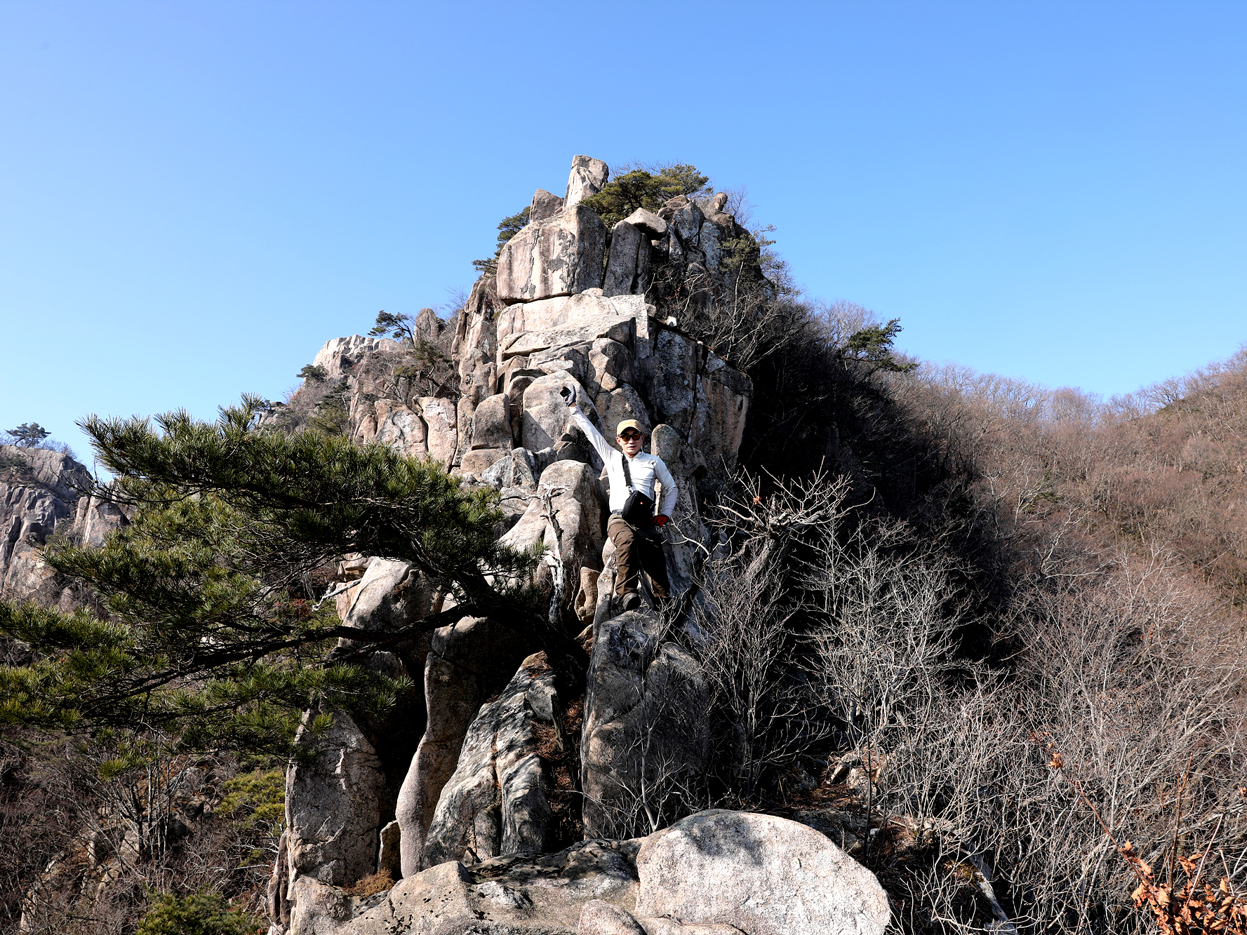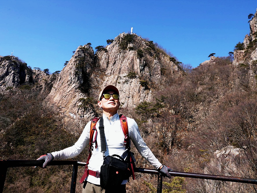 *험한 길을 내려가 직벽에 가까운 암벽을 타고 장군봉에 올랐다*