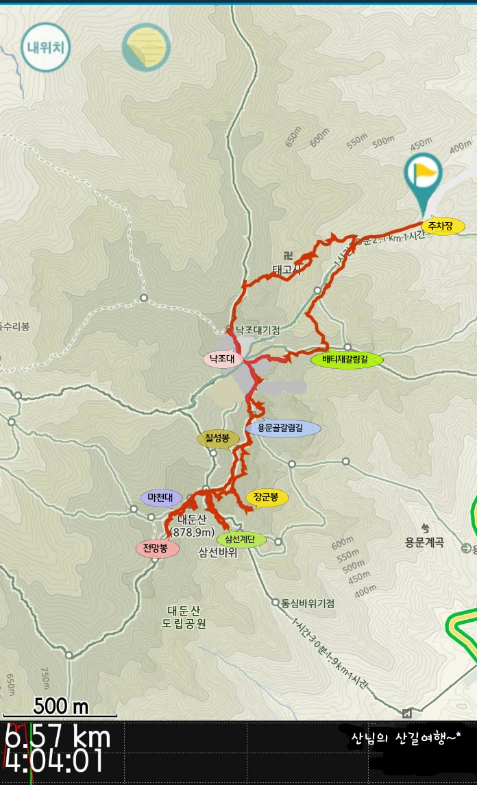 삼선계단~장군봉~칠성봉~낙조대~돛대봉 방향암릉~태고사* [산행거리 : 6.57km - 4시간 04분 (운동시간) ]